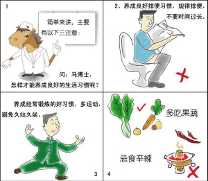 (4)術后活動:一般講手術創(chuàng)面較大,而傷口尚未完全愈合期間,應盡量少走路,這樣可避免傷口邊緣因用力摩擦而形成水腫,延長創(chuàng)面愈合時間。創(chuàng)面愈合后3個月左右不要長時間騎自行車,以防愈合的創(chuàng)面因摩擦過多而引起出血。